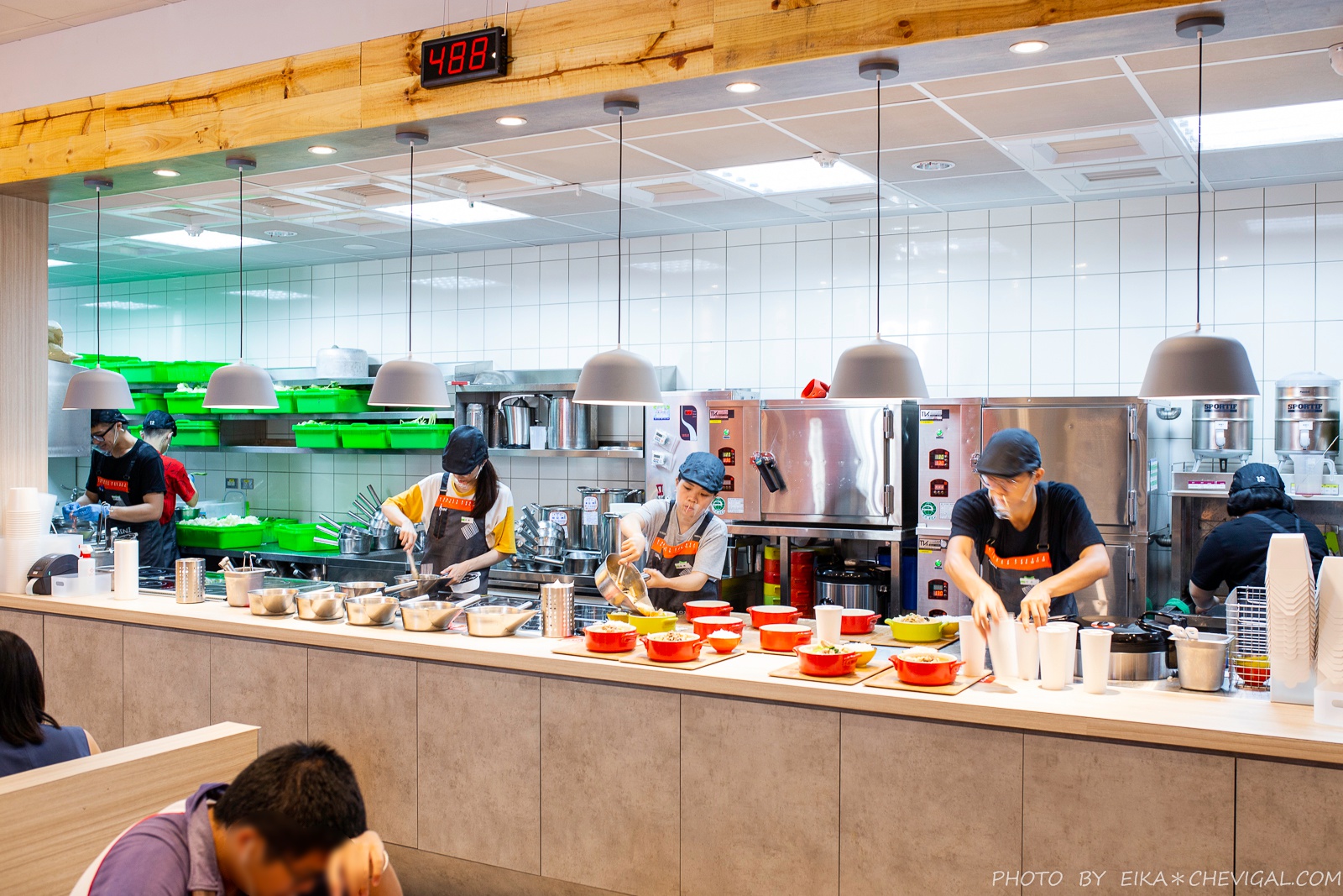 廚房採半開放的模式,可以看到店員在櫃檯備料出餐,餐點也是在這個地方領取。不過鍋具本身的重量較重,加上每鍋都裝得滿滿滿,在拿取移動到座位的過程需要稍微留意一下。