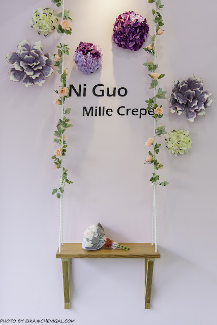 店門外設計了一整面粉色打卡牆,充滿了童趣與夢幻的氛圍,特別適合拍照打卡,也能幫自己的千層蛋糕拍張美照!不過千萬不要一時衝動坐上鞦韆,美麗的裝飾可是經不起現實和體重的摧殘啊 XD