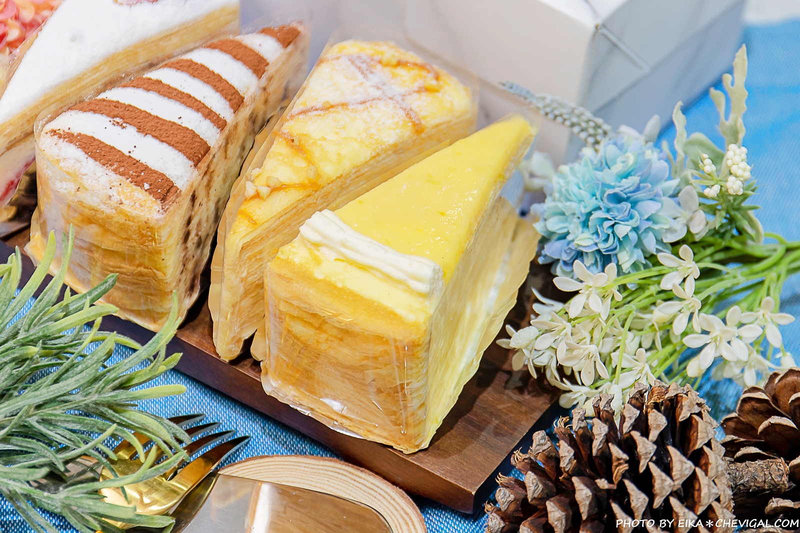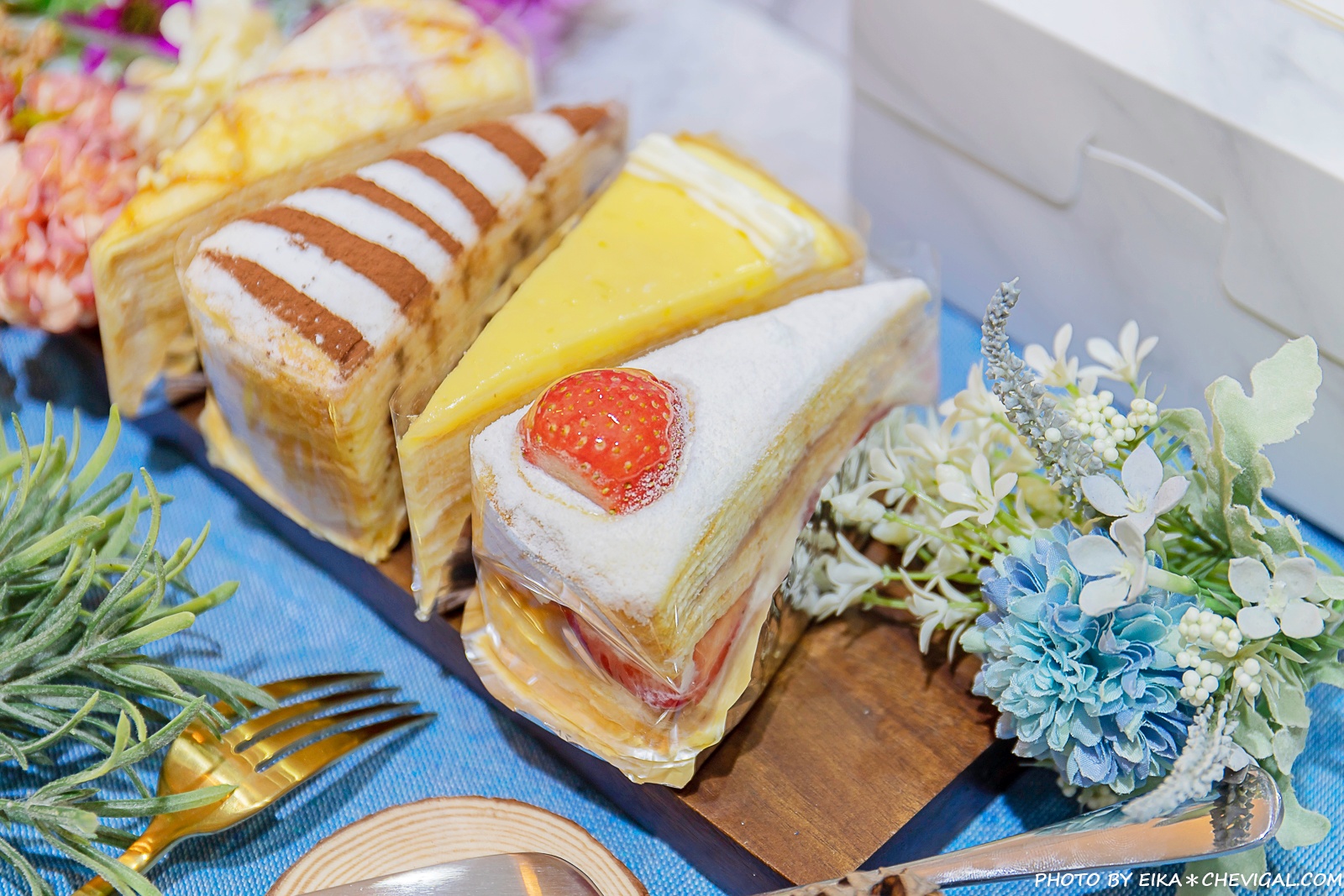 店內最暢銷的是綜合千層(四片裝),一次可以享用四種口味,每個禮拜都會更換不同的組合,而且每天都是限量供應,建議你們可以事先打電話來詢問口味、搶先預定,當天賣完就只能明日請早啦!