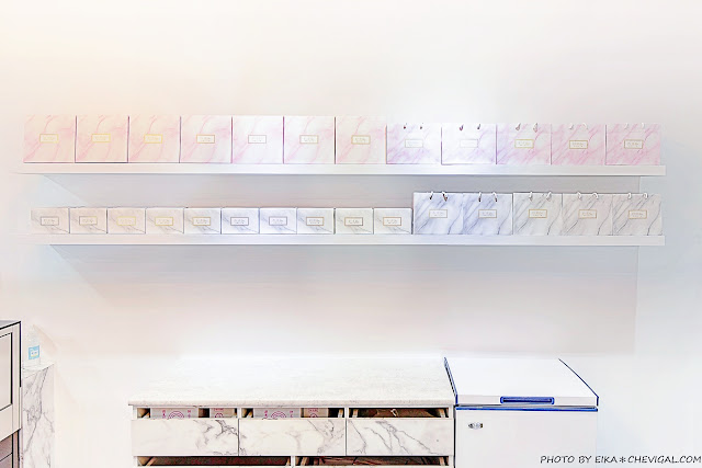 逢甲店使用的外盒與其他門市不同,黑白色大理石紋路的設計不僅呼應了店內的風格,自己享用或是送禮也很美麗大方;未來公益門市也會更換成大理石外盒,但是是少女心的粉紅色,想蒐集不同外盒包裝記得別跑錯地方囉!