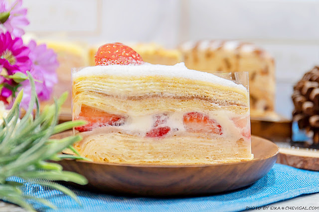 水果與千層蛋糕的組合真的還不賴,草莓的酸甜滋味襯托出了蛋皮與鮮奶油的馥郁香氣,30層以上的蛋皮層次感依然相當明顯,不僅保有蛋皮的微Q與彈性,多汁的草莓也讓整體的口感變得更加潤口。