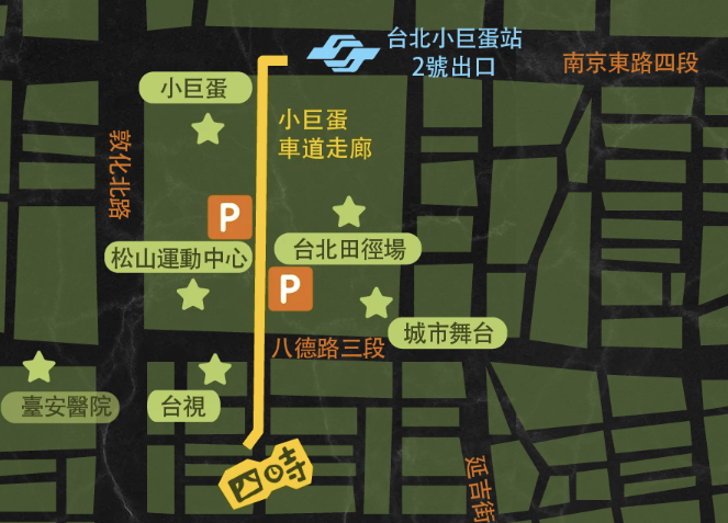如果像我們一樣從外地來用餐的朋友,可以搭乘捷運抵達台北小巨蛋站,再由這條在地人的秘密通道一路走過來,大概莫約十分鐘就能到達四時輕燒肉。