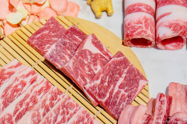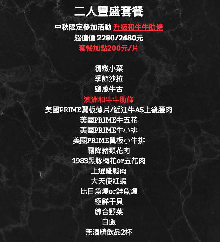 四時輕會將牛肉與其他肉品分開來,對於不吃牛肉的朋友來說特別貼心。牛肉系列有鹽蔥牛舌、美國PRIME翼板薄片/近江牛A5上後腰肉、美國PRIME牛五花、美國PRIME牛小排與美國PRIME翼板小牛排。對了,如果擺盤的材質能再稍微調整一下,質感應該會提昇不少。