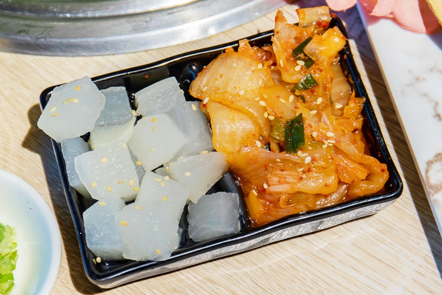 精緻小菜的種類並不固定,通常是隨機提供。清甜的醃蘿蔔完全不顯死酸,吃來非常爽口解膩;而泡菜則是偏向韓式口味,香氣十分飽滿,但是辣度卻是相當平易近人。