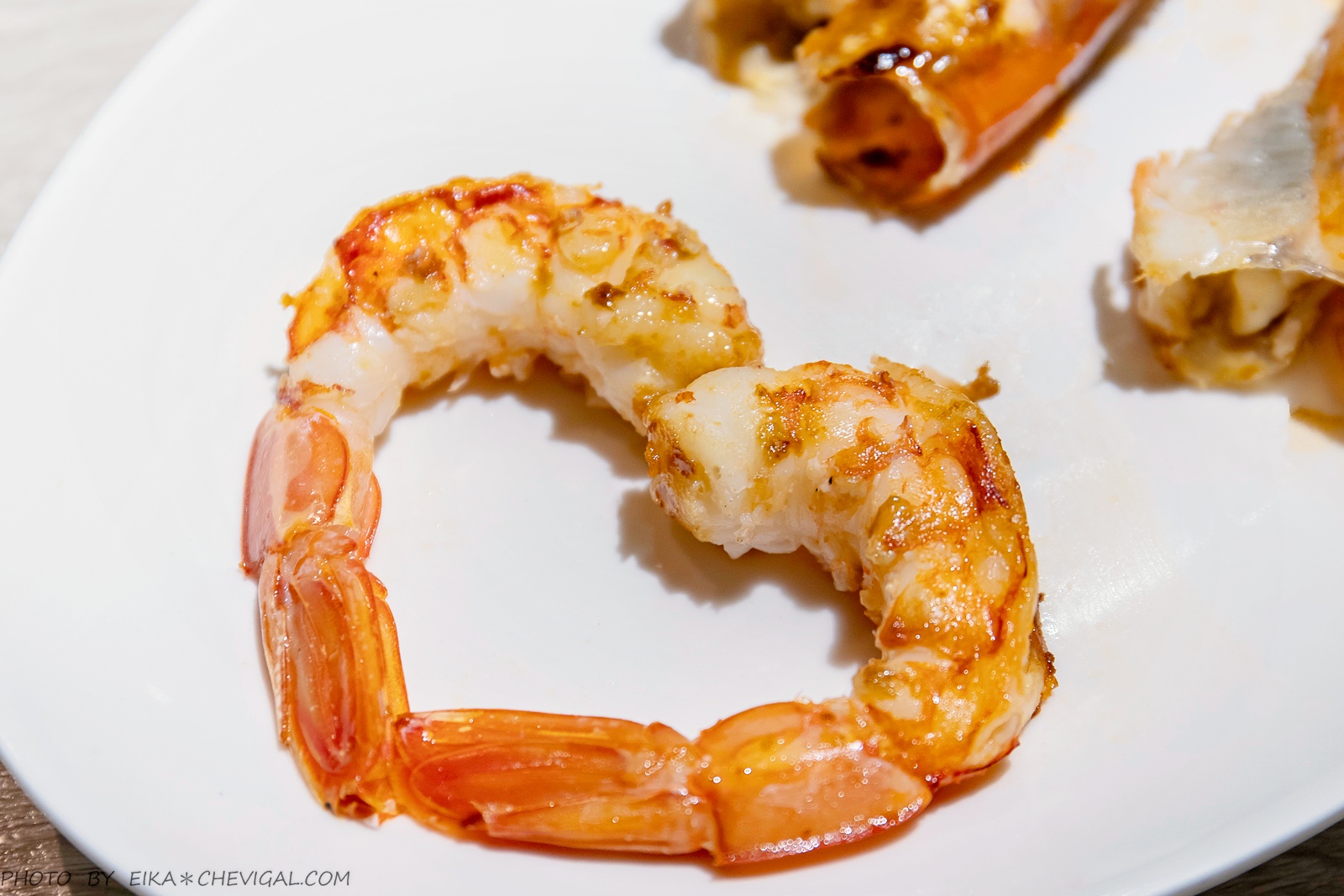 小鮮肉店員真的很貼心,還會將烤好的大天使紅蝦擺成愛心的形狀!蝦肉吃起來紮實鮮甜有彈性,烤至微焦的程度,還能吃到具有層次感的迷人焦香~