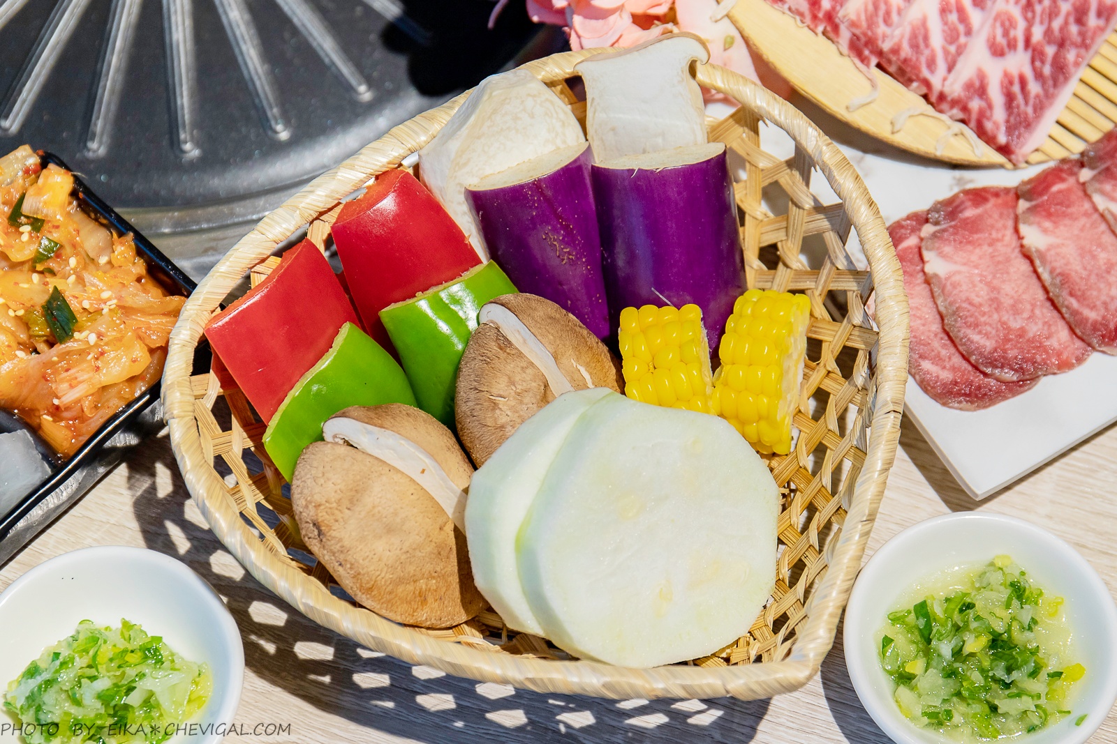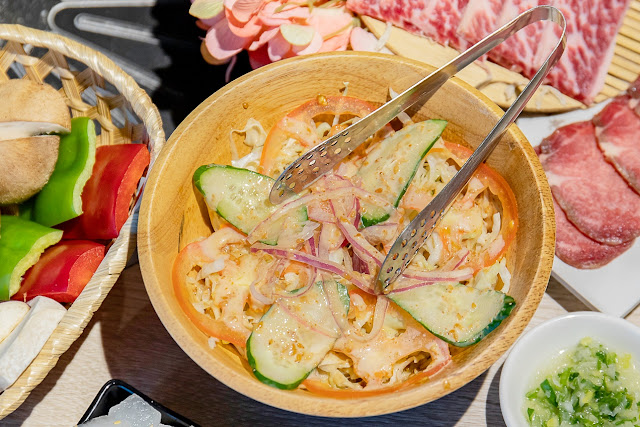 這天我們享用的是二人豐盛套餐,內含各式肉品、海鮮、小菜、沙拉、蔬菜、主食與飲品,即使是「輕燒肉」不醃製、不調味的食材原味,也能相當具有飽足感!其他套餐可參考官方網站。