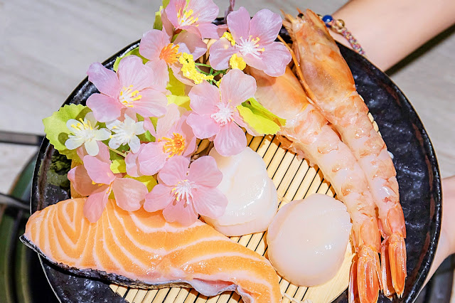 精選海鮮固定內含大天使紅蝦與極鮮干貝,魚肉則有比目魚燒or鮭魚燒可以選擇,而我們這天選擇的是油脂較為豐厚的鮭魚燒。