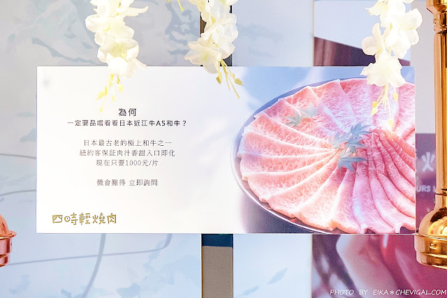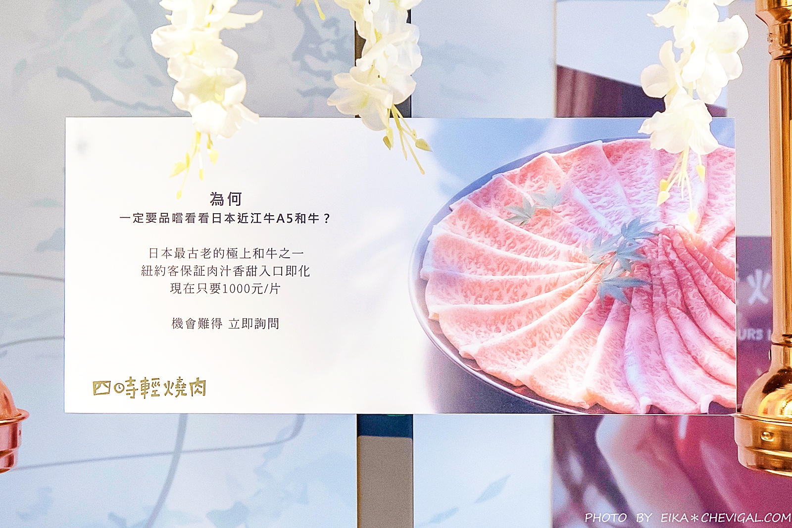 和牛是近幾年燒肉餐廳特別熱門的品項,在四時輕可以享用到的是日本三大和牛當中的近江A5和牛,頂級的紐約客部位主打香甜肉汁、入口即化的口感,喜歡和牛的朋友們千萬別錯過。