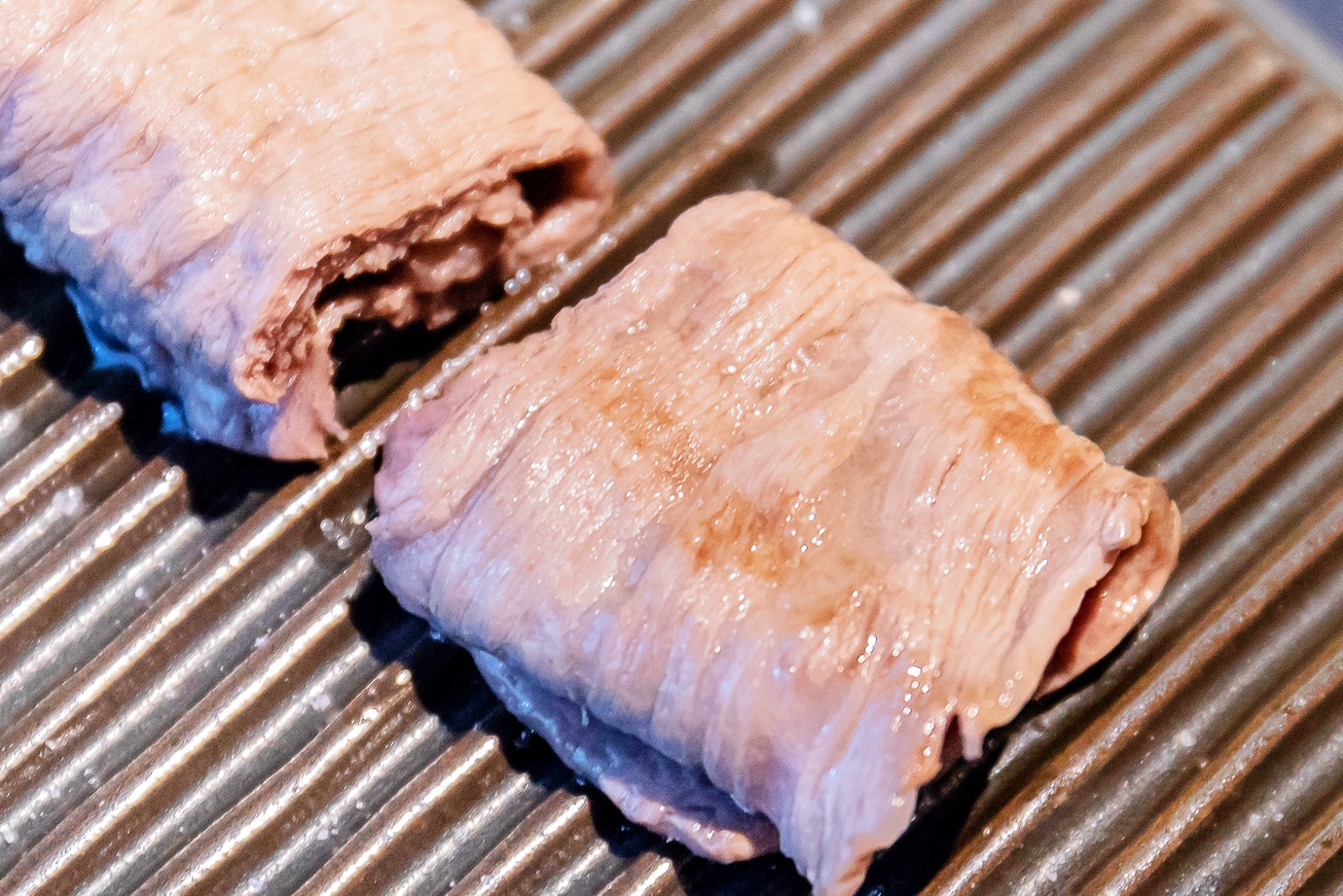 鹽蔥牛舌也是我們到燒肉餐廳特別愛吃的品項之一,牛舌的口感輕薄脆彈,再包入清香的蔥鹽,口感十分多汁有層次!