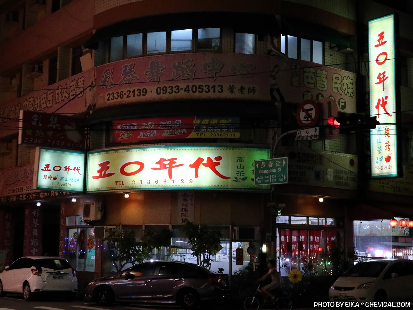 50年代位在長春街與中華路交叉口,偌大的三角窗位置,搭配上微泛黃光的招牌,其實這裡可是食尚玩家和TVBS都推薦過的店家唷!