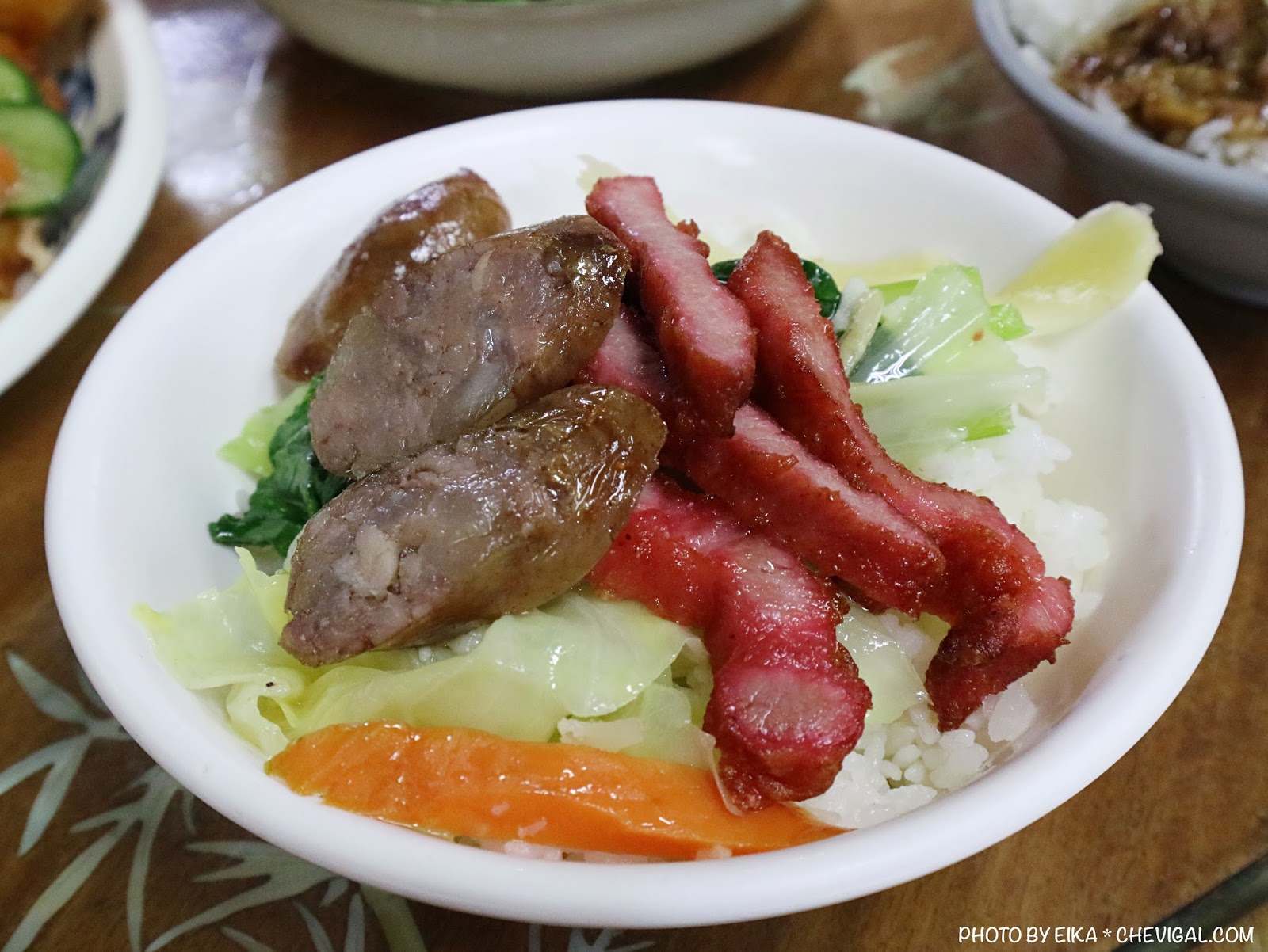 柚柚點的是小份招牌飯,主菜是燒肉與香腸,燒肉是以紅糟的方式處理,口感算是蠻有嚼勁的;香腸則是一入口就能感受到明顯的酒香,卻不會有著酒的苦味,讓人覺得蠻驚豔的!