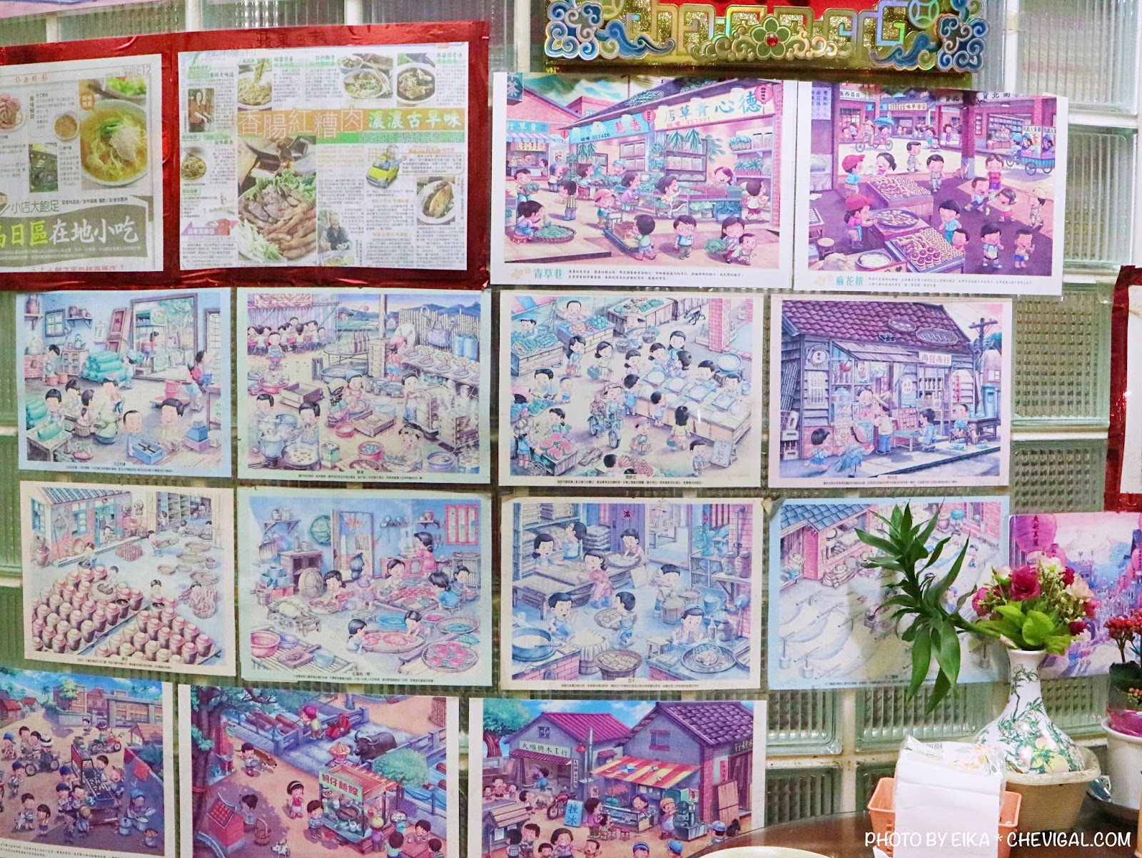 這時外帶的人潮比內用的客人還多,剛好內用算是有個空檔,當我們的餐點送上來時,人潮又差不多有七分滿,生意真的還蠻不錯的~牆面上還有不少復古的插畫,以及烏日的老照片。