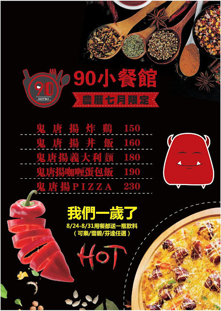 這裡和你們分享農曆七月限定的料理,將日式與義式料理與辣椒結合,推出五款香辣美味的鬼月料理!另外這個月底的最後一週還有週年慶的優惠活動,只要前來用餐都會直接送你們一瓶飲料!