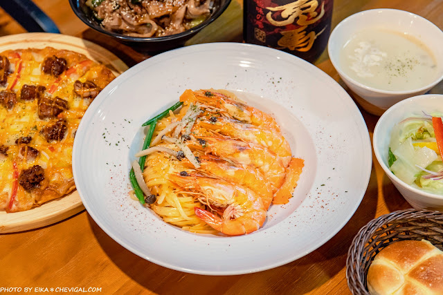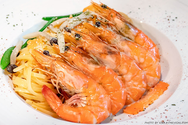 平常我們雖然常吃義大利麵,但是應該是第一次在義大利麵裡面吃到這麼大隻的鮮蝦!而且肉質吃起來頗具口感,起初還讓我們誤以為這裡選用的是草蝦,其實新鮮大隻的白蝦也能加此美味~