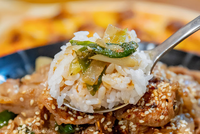 其實日式蓋飯的醬汁相當重要,這裡是選用烤鰻魚醬去調味,除了讓肉質散發迷人的鹹香,吃起來更是微甜不膩,完全沒有讓人害怕的死甜感~推薦敢吃辣的朋友也可以請店家加辣,風味會更有層次!