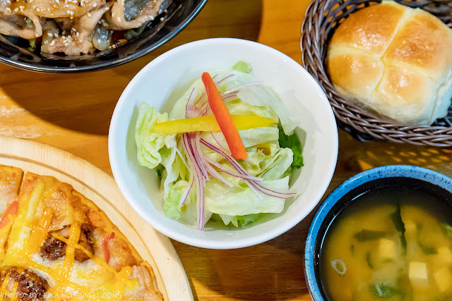 味噌湯撈起來有著滿滿的海帶芽與豆腐,另外還有加入洋蔥與蔥花提味,熱熱地喝起來就很舒服。