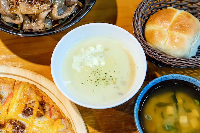 主廚濃湯喝來有著滑順奶香,裡面還吃得到洋蔥與香菇切丁,帶有自然的鮮甜。