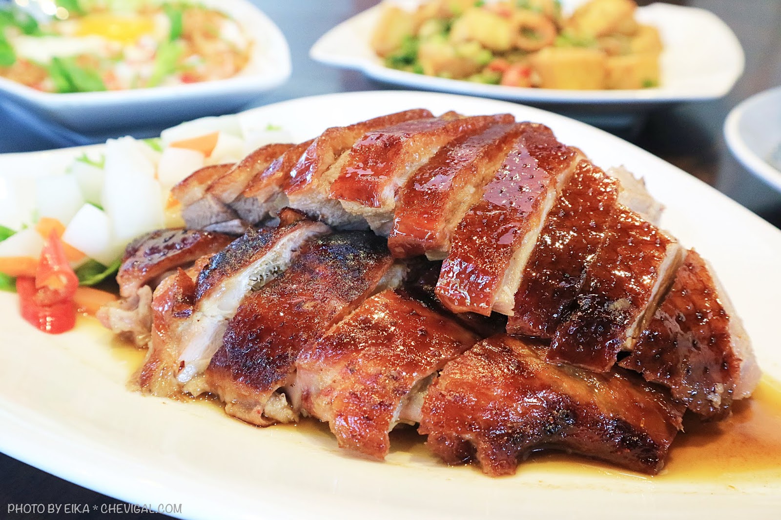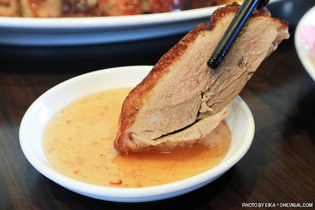 最令人驚豔是,這裡的燒鵝就算放到晚上依然不失香脆的口感!從這點就不難得知師傅的烤功有多麼精湛~另外還可搭店家提供的冰梅醬,肉質的尾韻更多了幾分香甜。