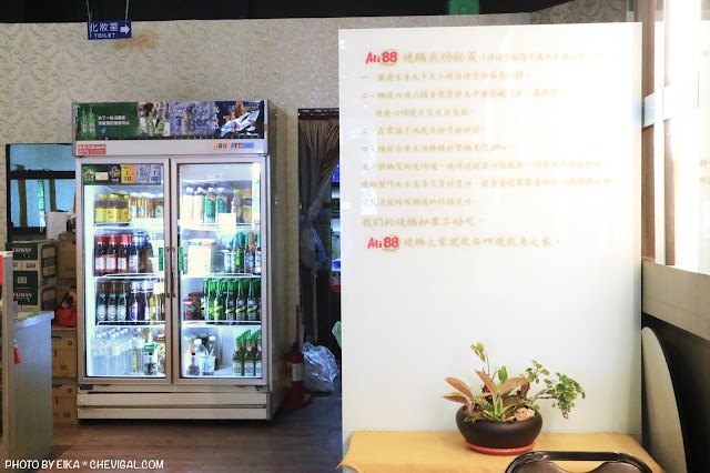 除了有多款飲品可以自取單點之外,旁邊還有店家提供的燒鵝武功秘笈,不僅有介紹燒鵝的特色與製作方式,甚至還寫著:「我們的燒鵝如果不好吃,就改名叫燒我鳥之家XD」看似逗趣的文字,其實也透露著店家對於燒鵝美味的用心與堅持。