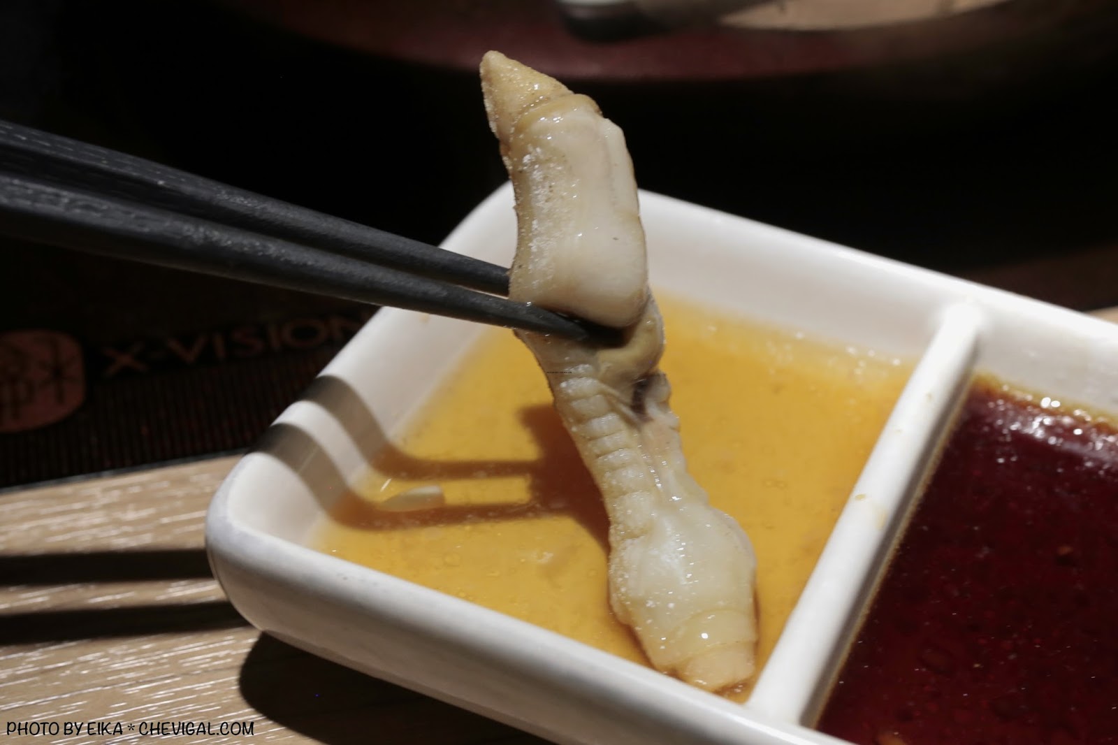 香豚豬梅花的油花分佈得很均勻,這道肉品則會建議煮至全熟再享用,莫約需要10秒的時間。