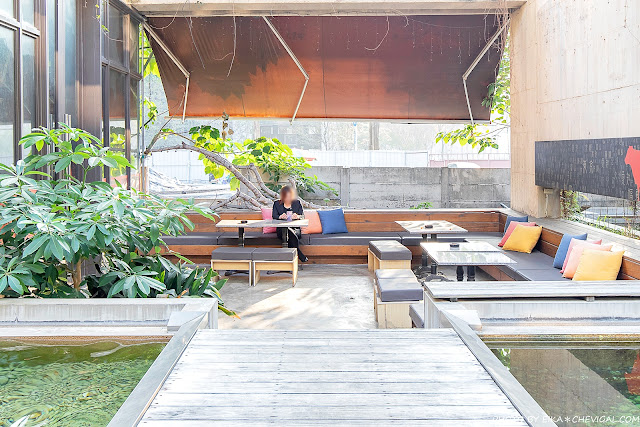 ㄇ字形建築中間還有廊道連結兩側,不僅特別適合拍照打卡,而且門口另一側還有戶外的休憩區域,簡單悠閒的氛圍也很愜意。