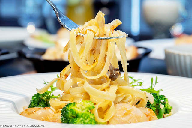 除了生食級干貝之外,另外還有搭配青花菜與菇類,而且義式寬扁麵條的口感比我們預期中地還要彈牙一些,整體風味清爽淡雅,比較著重於食材本身的原味,口味清淡的朋友接受度應該會蠻高的!