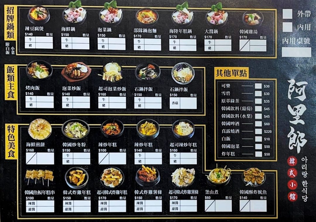 阿里郎菜單