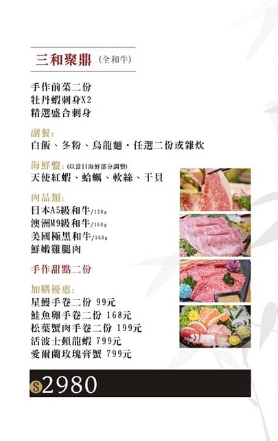 三和聚鼎套餐(全和牛)$2980元