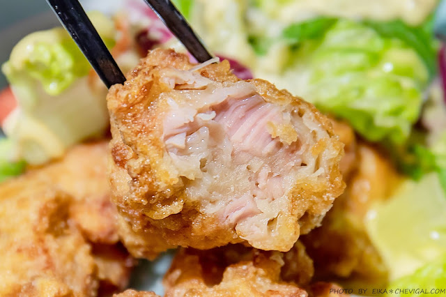 雞肉唐揚的另一側還搭配了新鮮的生菜沙拉,搭配的是凱撒沙拉醬與玉米醬,但是風味香甜不膩口,連平常不太愛吃沙拉的我們都有吃光光。