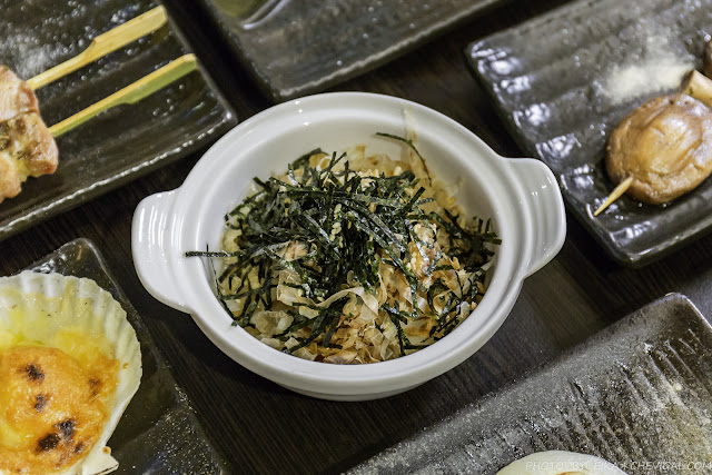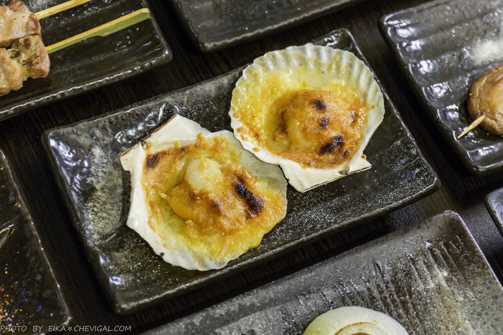 蜜汁雞腿肉串($60元),除了前面有提到的特製調料,闆娘也很推荐蜜汁的醬料;刷上蜜汁的雞腿肉仍然保有迷人鹹香,口感頗為鮮嫩,重點是不易覺得甜膩,平常和魚編一樣不愛吃蜜汁串燒的朋友可以試試。