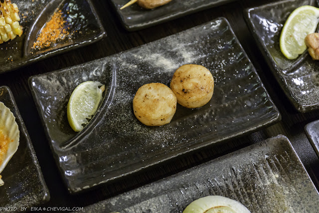 奶油甜玉米($60元),魚編一般在串燒店看到烤玉米都會先後退幾步,因為實在吃過太多烤過頭的乾玉米啦!不過熊爺這裡的烤功真的很不錯,玉米十分好咬,而且還帶點淡淡的焦香與奶油香~