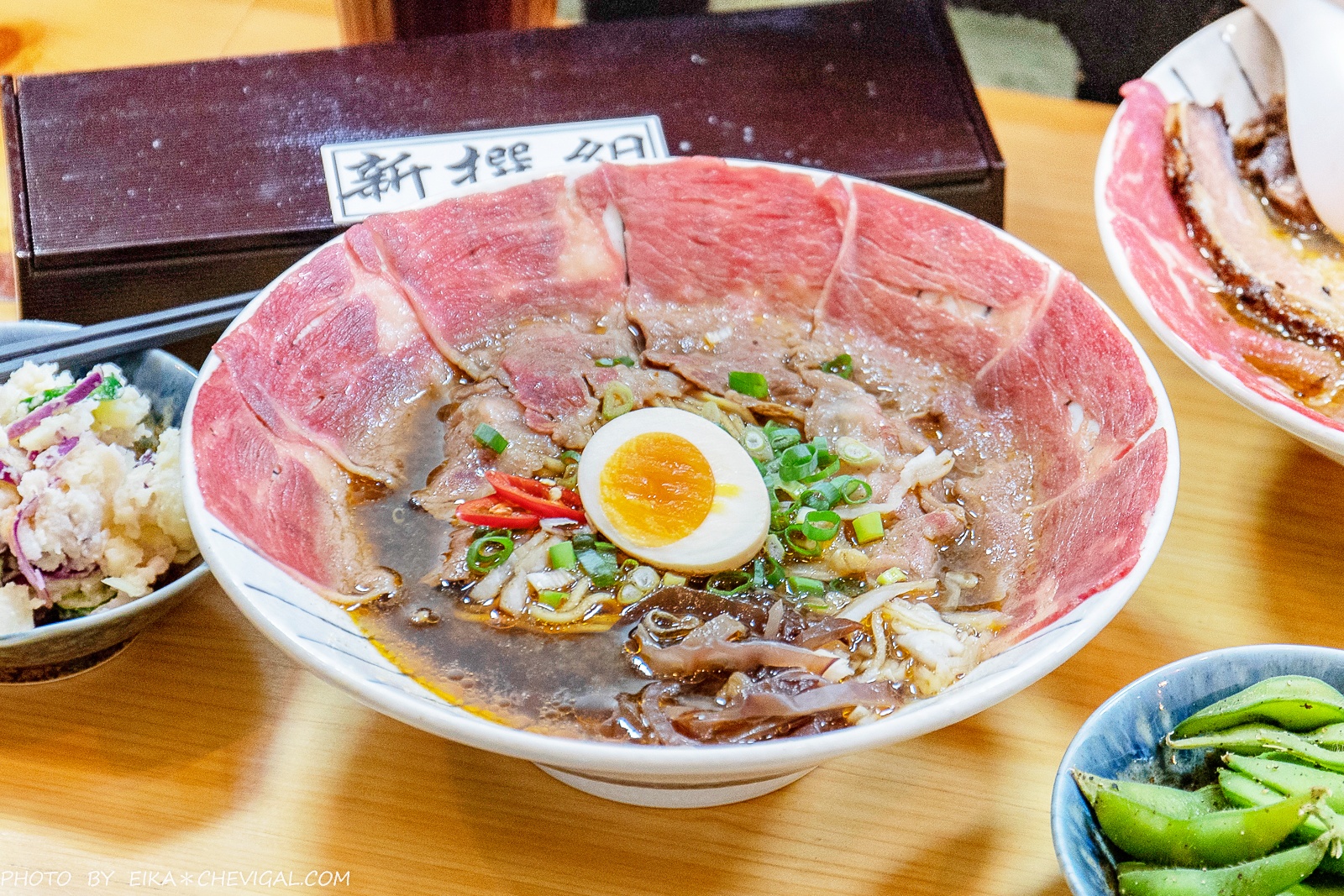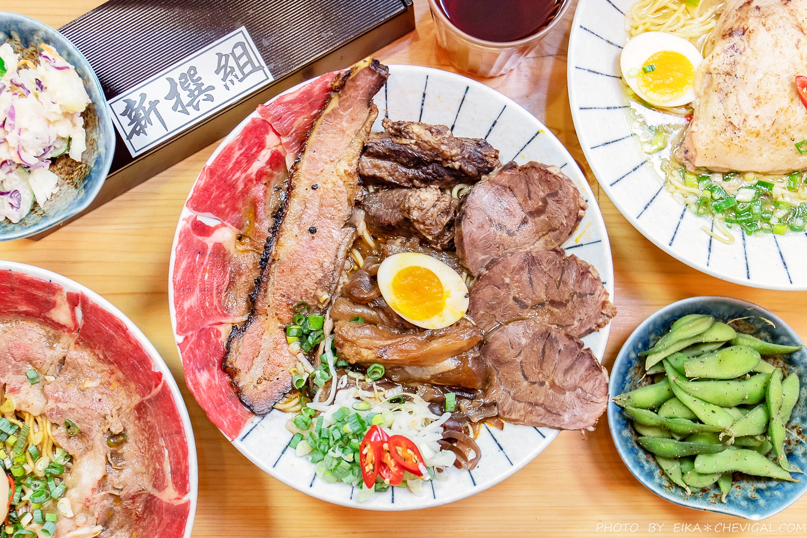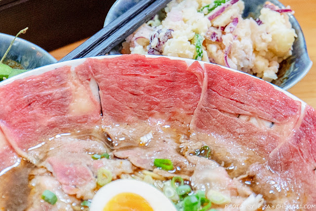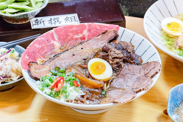 或許你們都很愛吃牛肉麵,但除了比較台式吃法的鮮涮牛肉麵之外,應該很難得吃到這種擁有半熟牛肉的日式拉麵!新撰組選用了choice等級的翼板牛肉,上桌時還能看到粉嫩的肉質色澤。