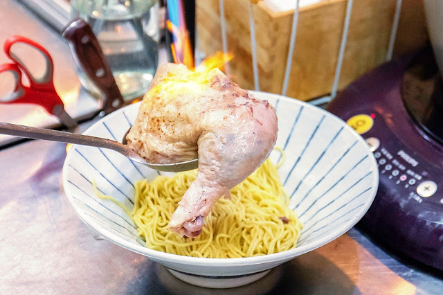 整隻鮮嫩的大雞腿會先經過炙燒,在炙燒的過程中慢慢散發出迷人的香氣,讓雞腿的香氣層次更為提昇,同時也讓店內其他聞到香味的客人都快凍美條啦XD