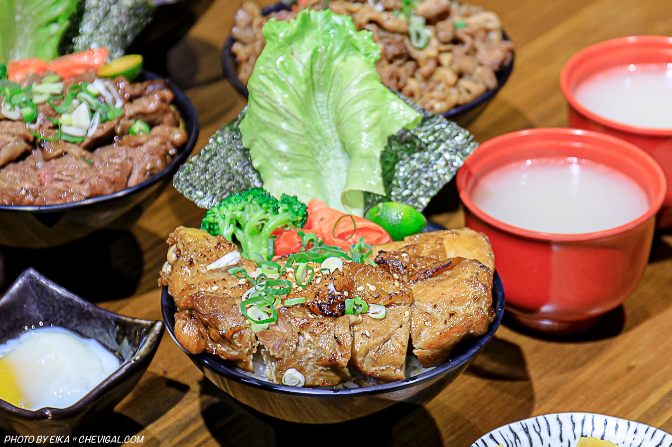 不吃牛肉的朋友也別擔心,牛丁次郎坊還有提供數款雞肉丼與豬肉丼,其中最誘人的莫過於這款奈良極上炭燒雞腿排丼了!厚實的超大雞腿排霸氣地佔據了超過半碗丼飯的表面,旁邊不僅附有紅薑、青花菜、生菜與海苔可搭配,還能擠點檸檬汁提味。