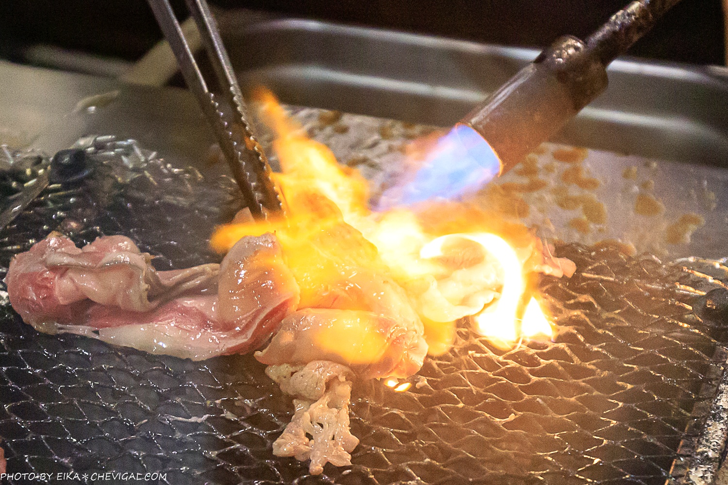 在店門口隔著玻璃還能看見燒肉炙烤的過程,底部經過烤爐燒烤,表面則是使用噴槍炙燒,進而逼出肉質本身的油脂香氣,視覺上也蠻有效果的!