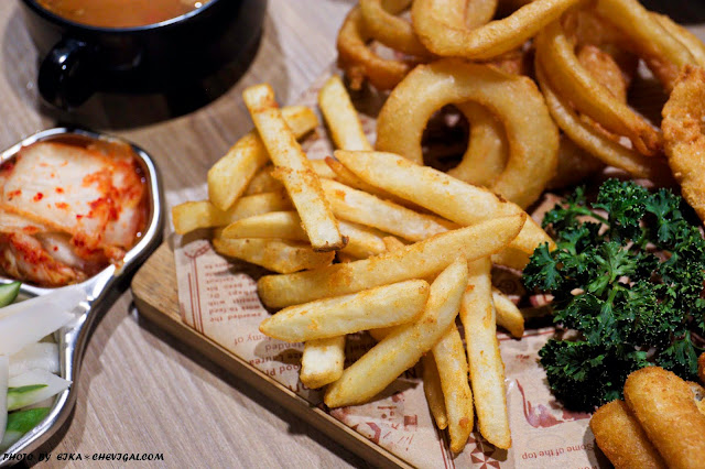 黑牛的炸物選擇也很豐富,不過沒有制式的炸物拼盤,各款炸物皆需單點,上桌時會再統一出餐;醬料附有番茄醬與黃芥末加巴西利,若不習慣巴西利的獨特香草風味,也可向店家告知不需添加。