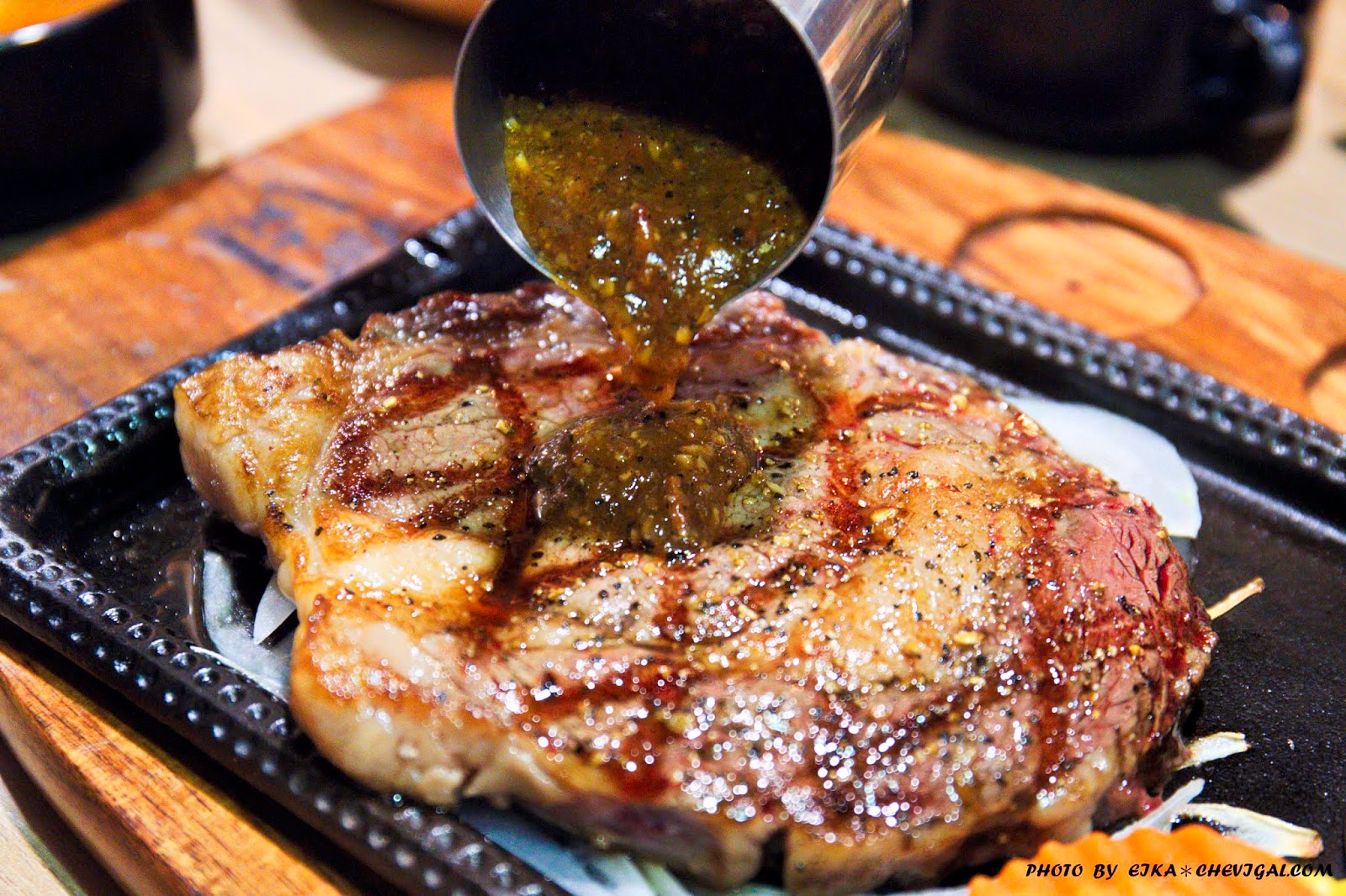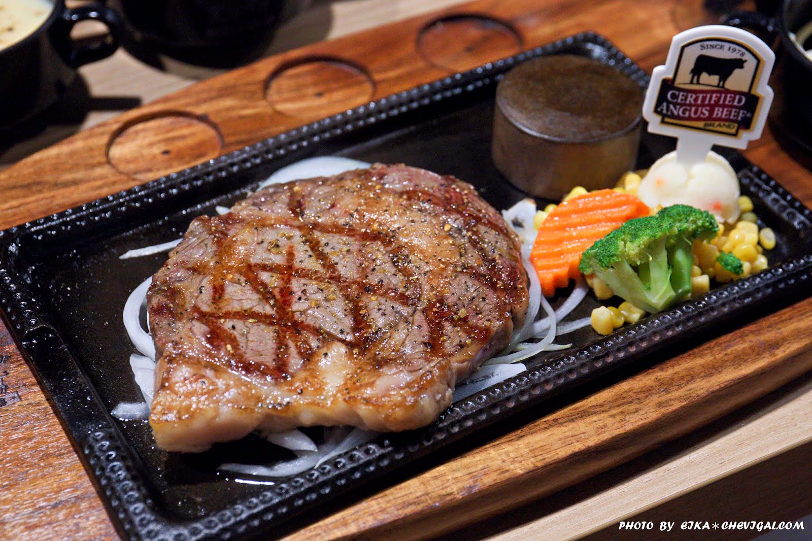 燈愣!我們今天的主角終於要陸續出場囉!我們這天選擇的是10oz安格斯肋眼搭配黑胡椒醬,肋眼軟嫩多汁的肉質僅次於菲力,可以說是點餐率最高的牛排部位之一。