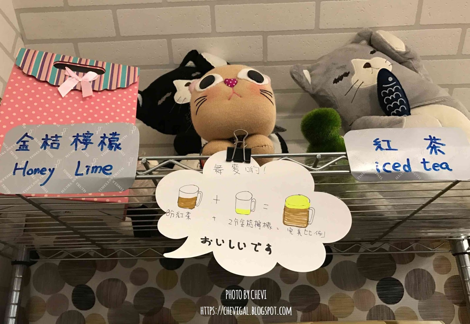 飲料除了有金桔檸檬和紅茶可以選擇,竟然還有神秘的完美比例可以自己調製喔~