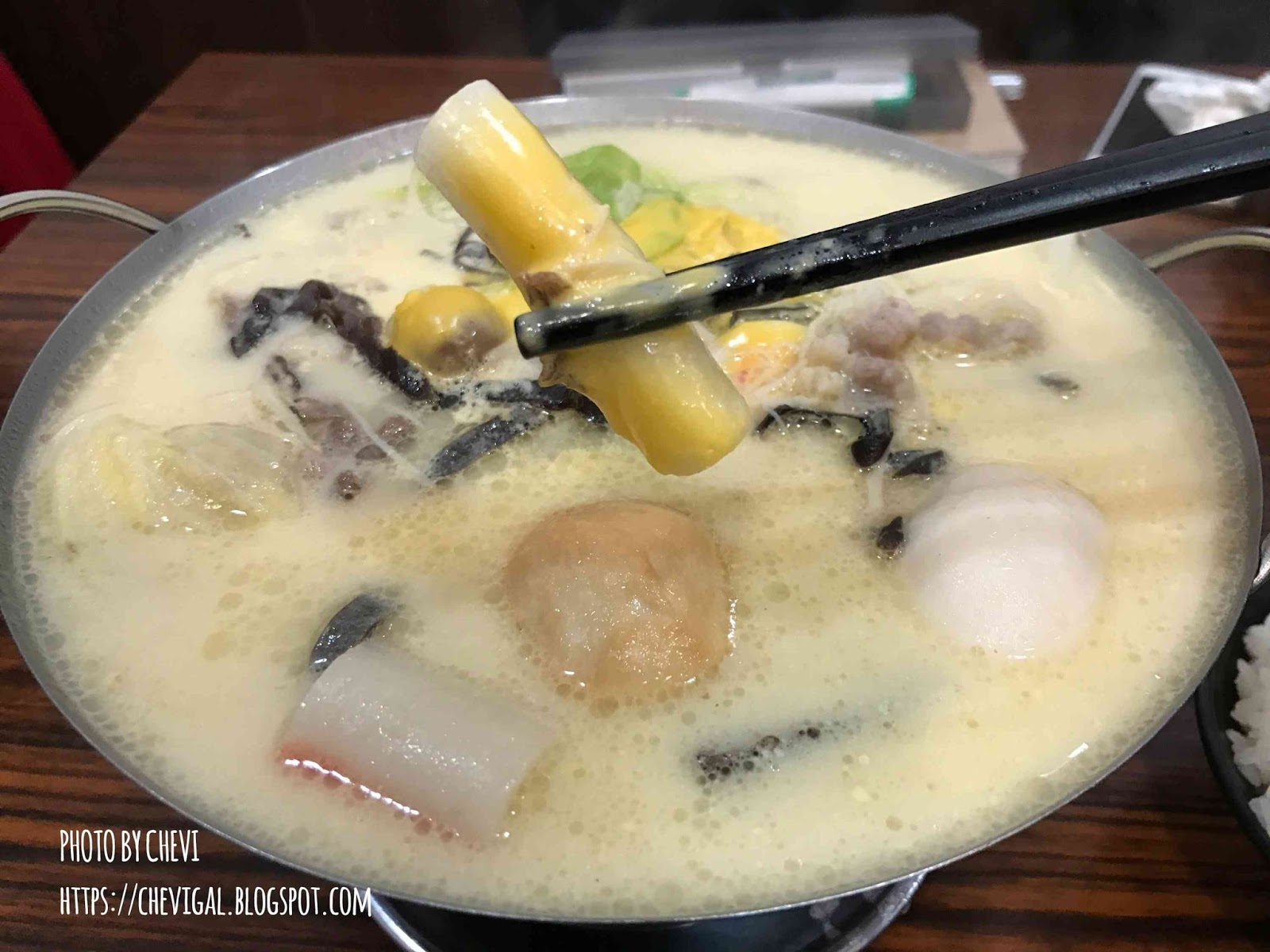 俞兒的奶香鍋終於上桌囉~乳白色的湯頭都蓋過半個表面啦!