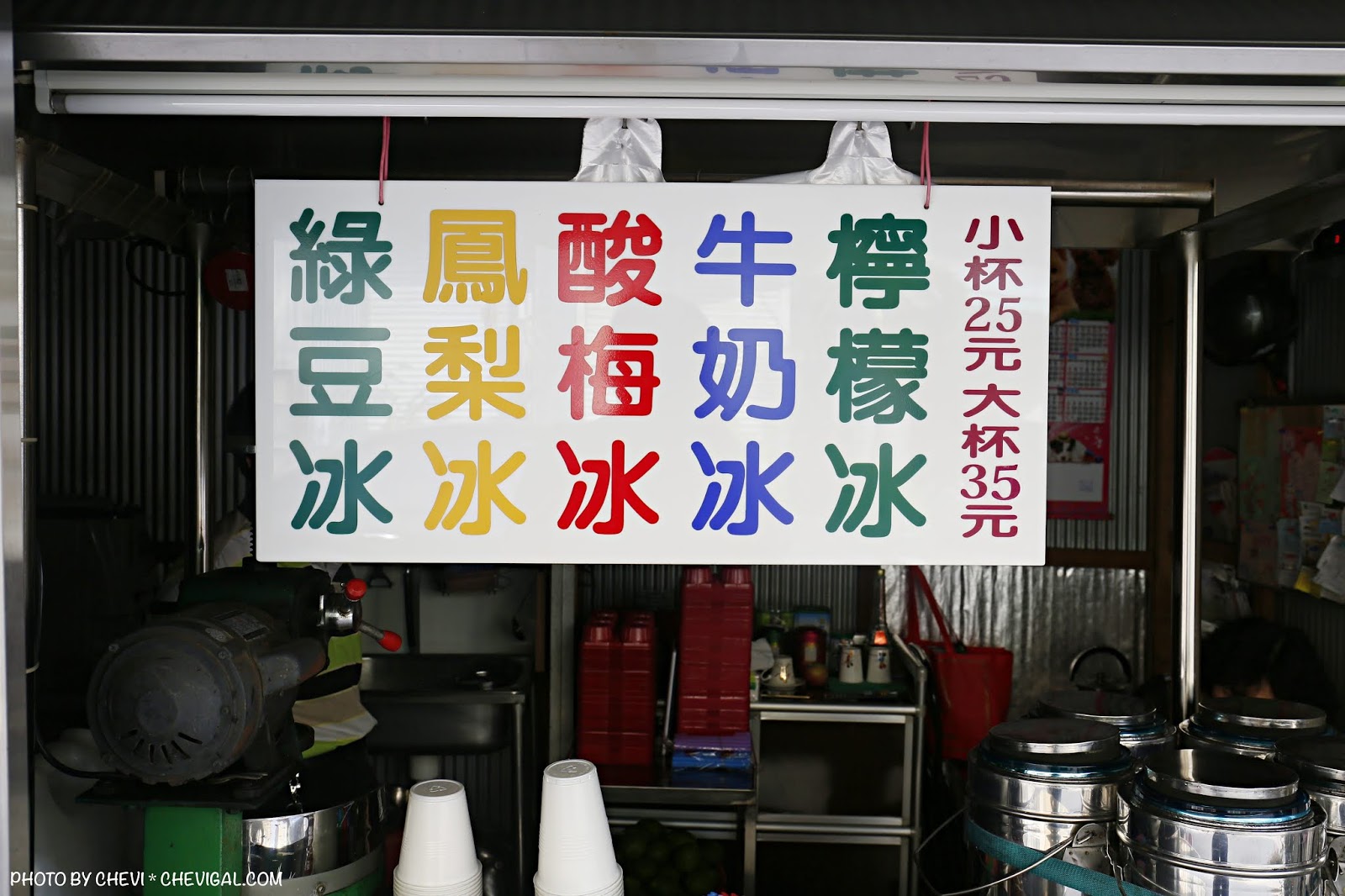 有著鐵皮低調的店面外觀,我們在大熱天一路走來忍不住擔心是否沒有營業,還好走近一看,發現鐵捲門有拉上來,老闆和闆娘坐在裡頭閒聊。