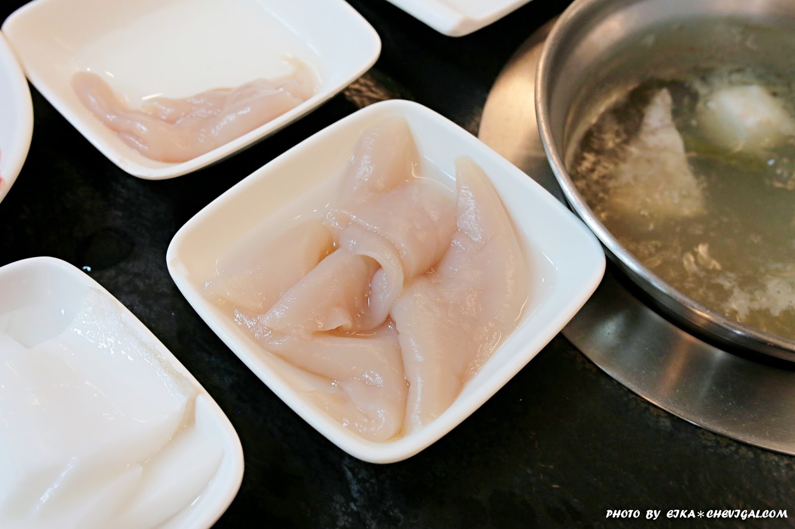 魚兒特別愛吃魚皮,所以點了魚皮與曼波魚皮,左邊比較深色的是一般的魚皮,印象中聽說是吳郭魚皮,但我們都覺得曼波魚皮比較好吃!煮透了之後入口即化,Q滑且富含膠質的口感真的很讚耶!