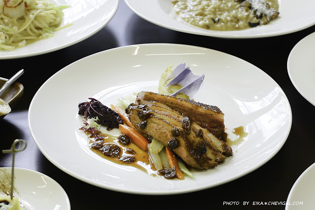 主廚透過慢煮的方式,將鴨胸烹煮至五分熟,讓肉質上桌時還能慢慢熟成,當客人享用時即能品嚐到最為鮮嫩的口感,而且完全不柴澀,入味的鴨胸與搭配的醬汁風味吃來相當有層次。