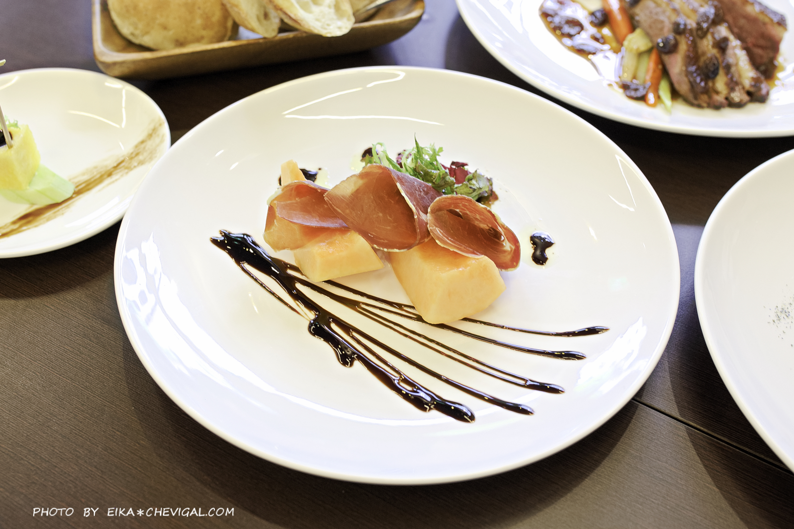 特色前菜也毫不馬虎,這道煙燻火腿哈密瓜的味道頗有層次,除了能夠吃到煙燻的獨特鹹香,搭配上哈密瓜的多汁清甜,香氣飽滿而不膩口,非常好吃。