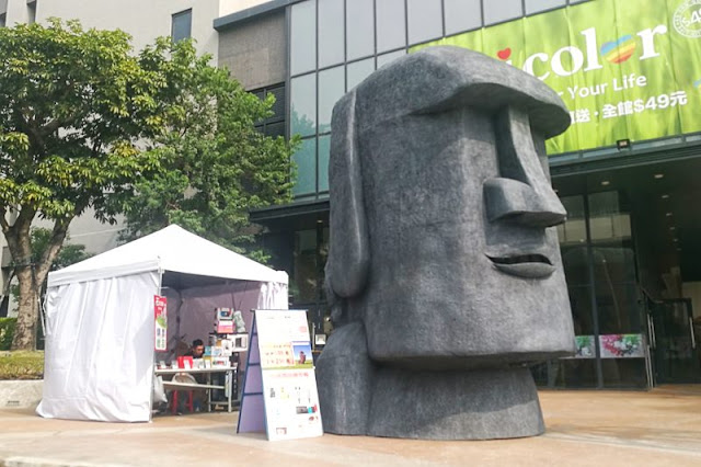 超大摩艾現身百貨廣場!超過三公尺高的超大摩艾石像現在就在台中秀泰廣場喔!整點還會吐泡泡~大家快來拍照打卡阿!