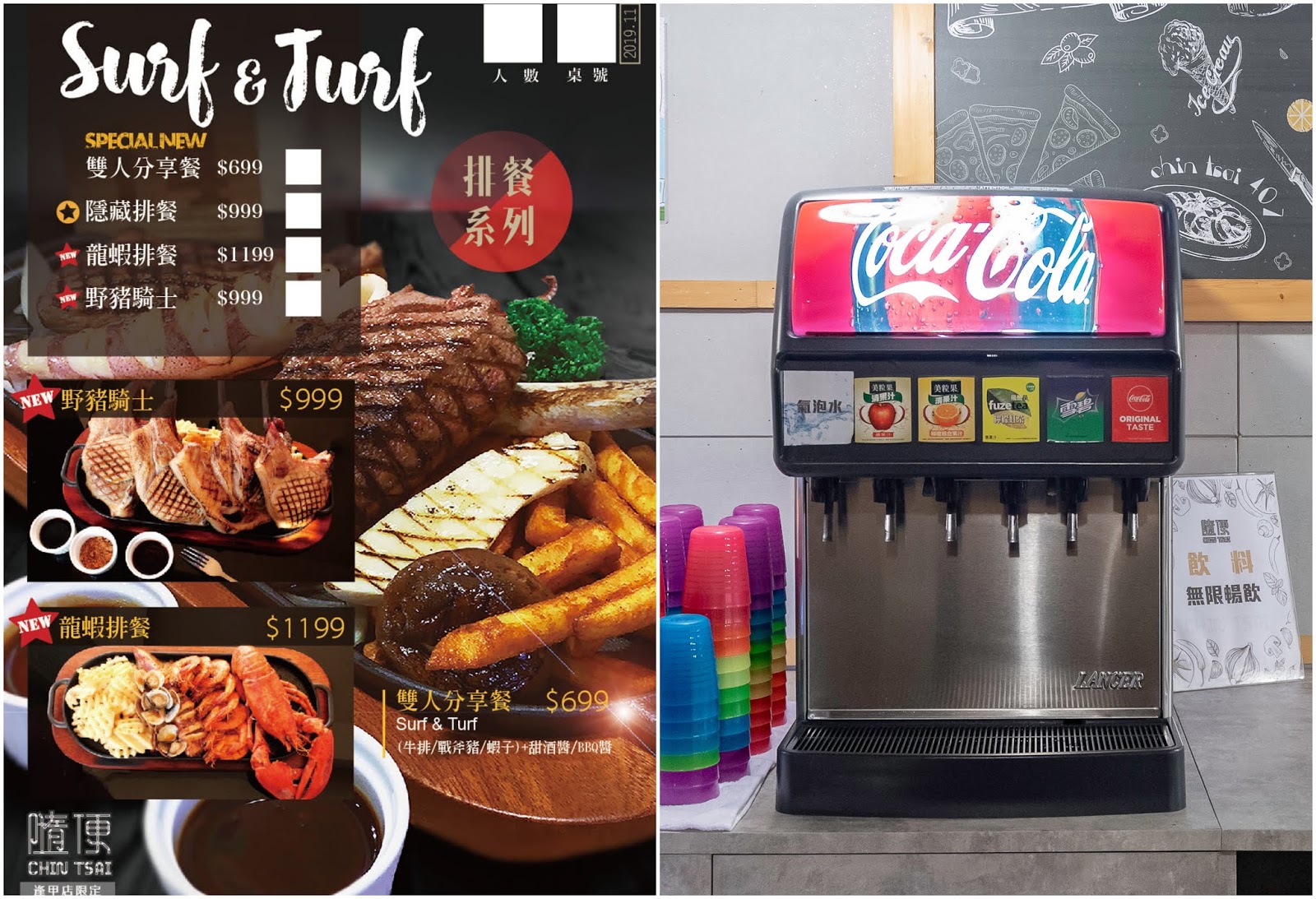 排餐系列也是許多肉肉控必點!而且份量都超豪邁,特別適合大胃王朋友來挑戰~對了,店內的飲料通通都是無限暢飲,愛喝多少就裝多少,保證可以讓你們喝到飽XD