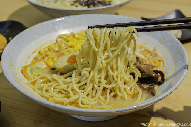 拉麵搭配的食材種類不多,不過份量都還蠻有誠意的~裡頭有魚板、飽滿的玉米顆粒、Q彈的黑木耳、清脆的豆芽菜與溏心蛋,與拉麵麵體份量的比例搭配得不錯,不會吃到最後都只剩拉麵。