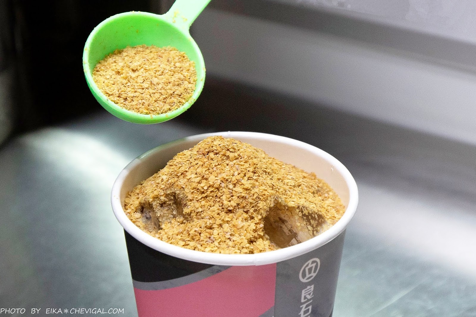 平常喝飲料時都不太敢加粉條,因為會擔心粉條遇冰會變硬;不過良石丘選用的粉條口感真的很不錯,冰涼涼的奶香之中依然吃得到Q彈的口感,喝起來也蠻有飽足感的。