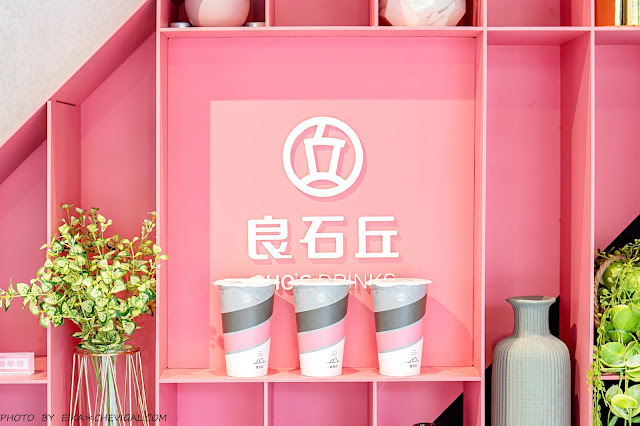 良石丘的色調以黑色、粉紅色與純白色為主,簡潔大方的色彩讓人印象深刻;就連點餐櫃台也顯得特別有質感,休閒感之中帶有輕奢華的時尚風格~微帶光澤的黑色背景更讓飲品特別好拍!