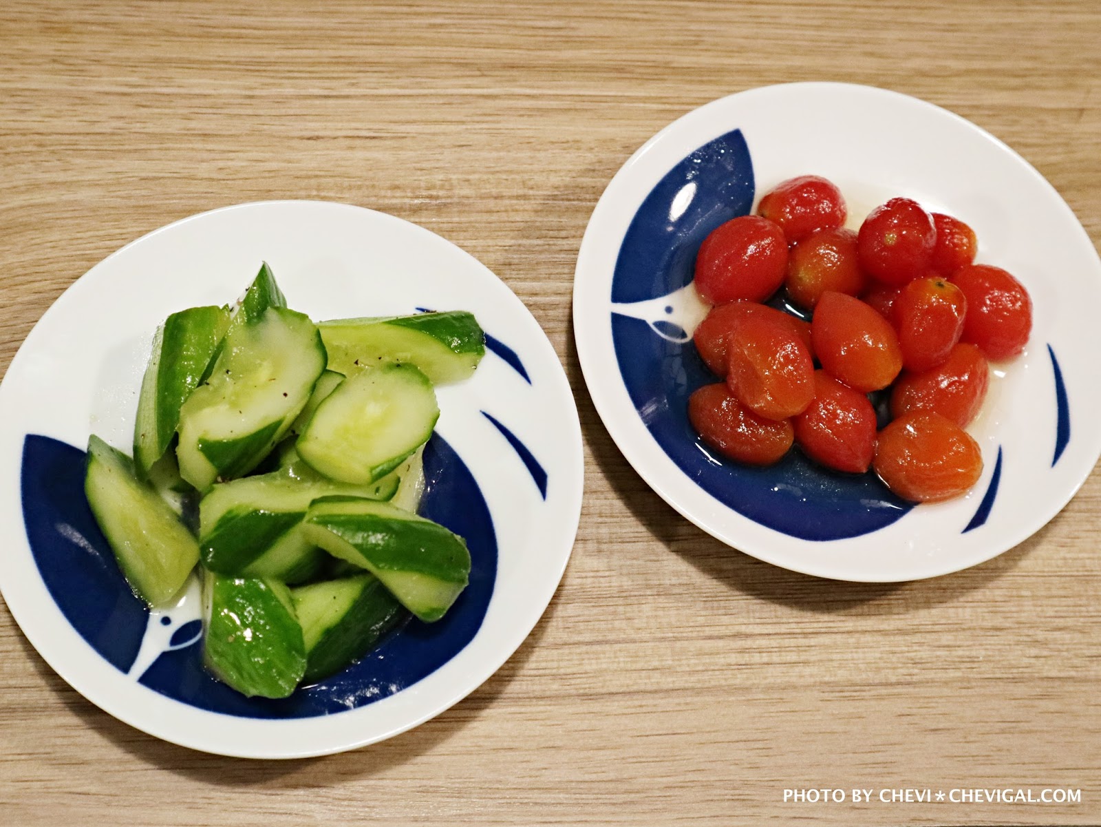 我們今天點的是小黃瓜及醃漬過的小番茄,其中小番茄讓我們特別驚喜,是比較難得吃到的小菜,還保有水果的甜味及水份,吃來是很自然的甜度,ㄧ盤份量也不少,單吃也覺得很清爽,很適合夏天享用。