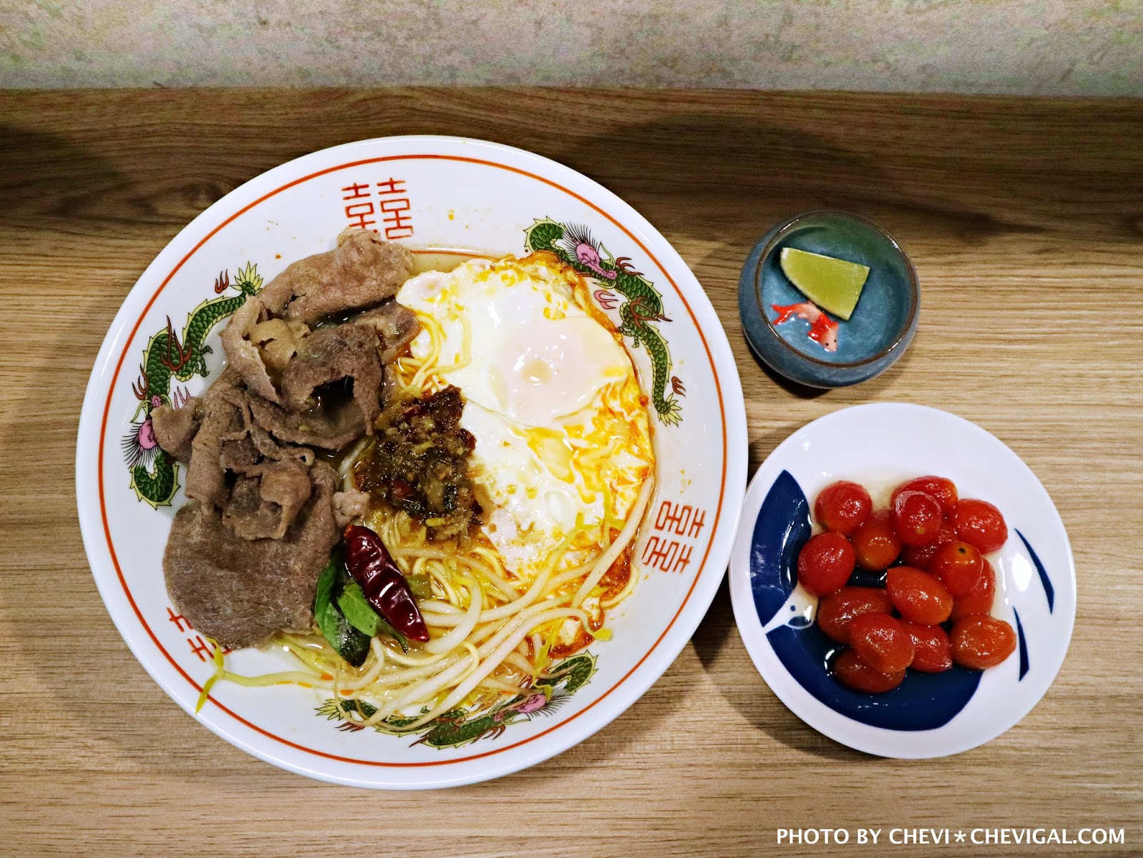 越南雞蛋麵(雞腿+半熟荷包蛋,湯頭濃度中):湯頭是以香茅+檸檬葉+豬大骨熬煮,加入南洋風味的蝦醬,並搭配香菜與九層塔。難怪一上桌時,就能感受到空氣當中瀰漫著一股清香。